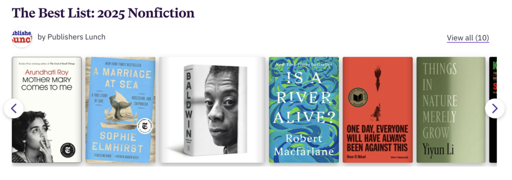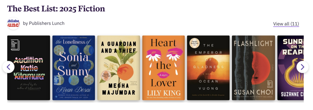 The votes are all in and we’re ready to celebrate the consensus very best books of 2025, based on a broad collection of lists. This has been an extraordinary year for authors and listmakers, with a wide variety of books receiving endorsements and no clear “books of the year.” Arundhati Roy’s memoir tops our count, by a single vote only, followed closely by novels from Katie Kitamura, Megha Majumdar and Kiran Desai, and Sophie Elmhirst in nonfiction.